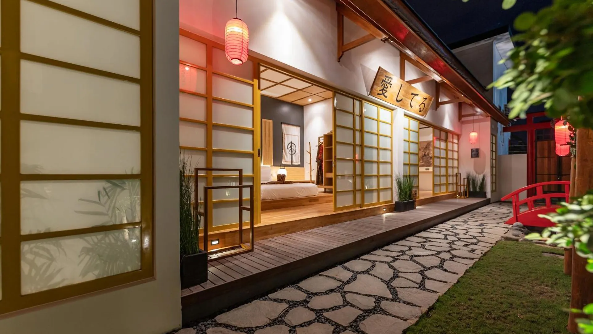 Von der Villa Aishiteru sind es 27 Minuten mit dem Auto zum Flughafen Ngurah Rai. Gäste können sich in einem weitläufigen Garten mit einer Sonnenterrasse entspannen.